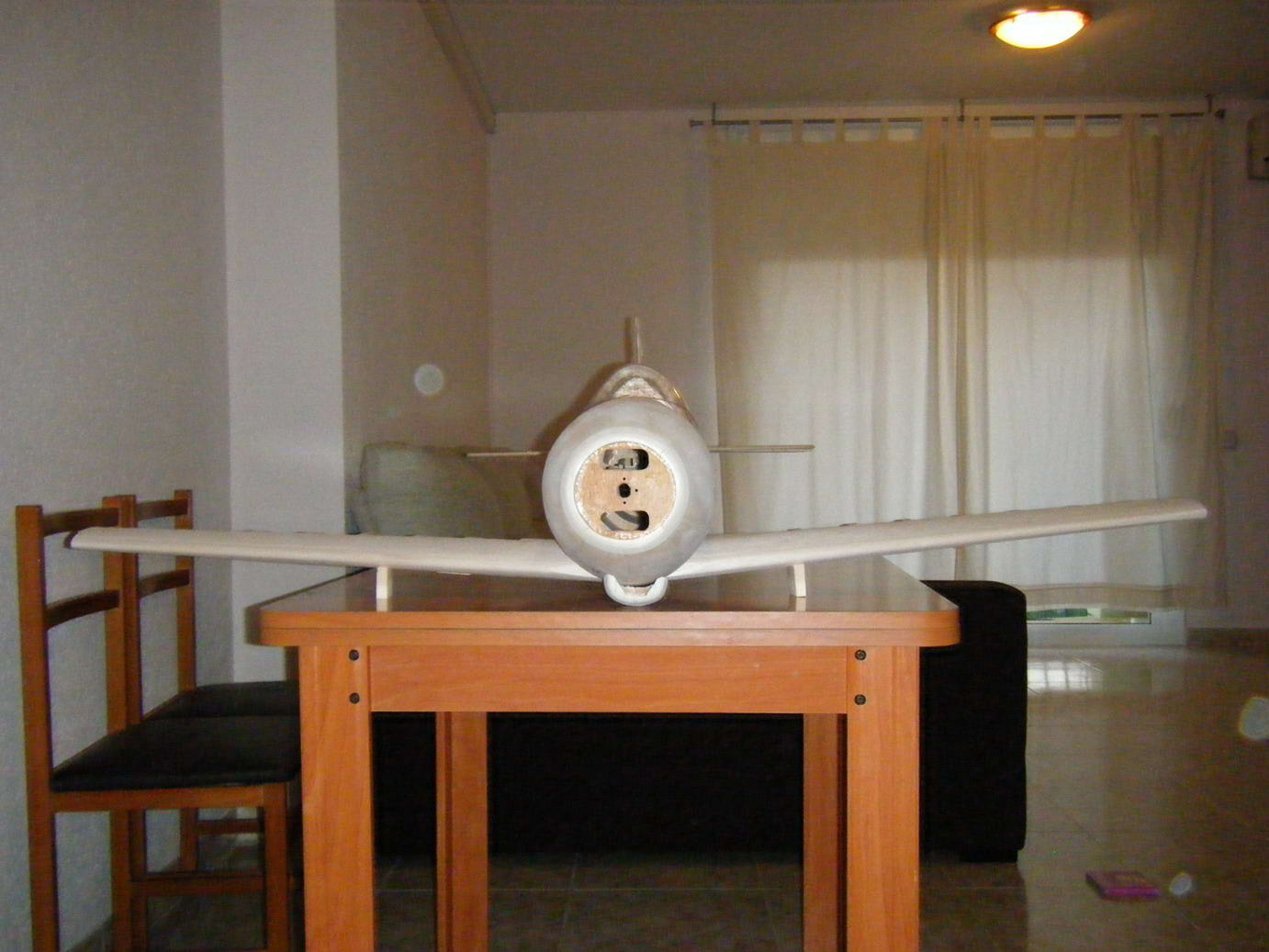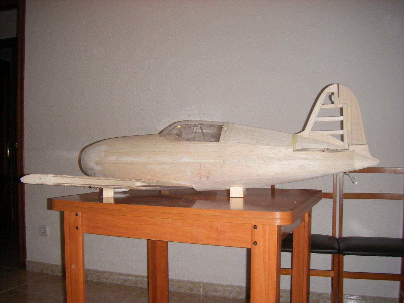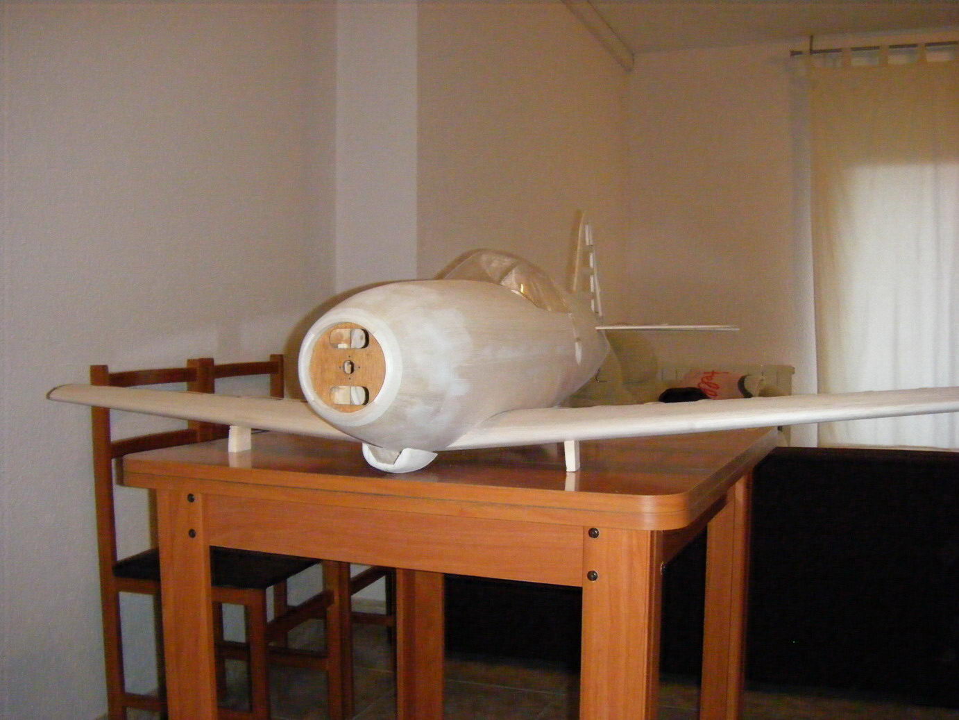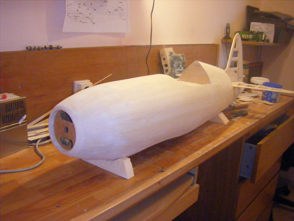 En el morro lo que hice fue hacer el interior en porexpan y la fui recubriendo con tiras de balsa de 2mm, de esa manera, exteriormente quedo como el resto del avion.