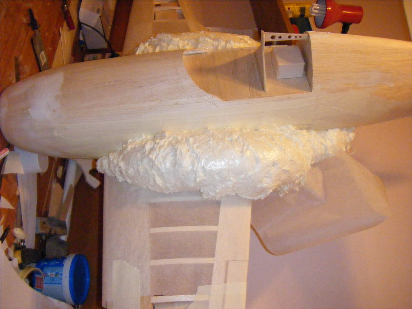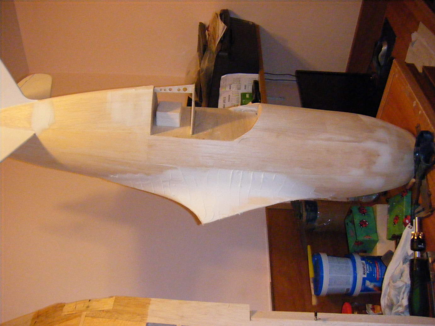 Una vez terminado eso, tengo que enfibrar todo el fuselaje con fibra de vidrio y epoxi.