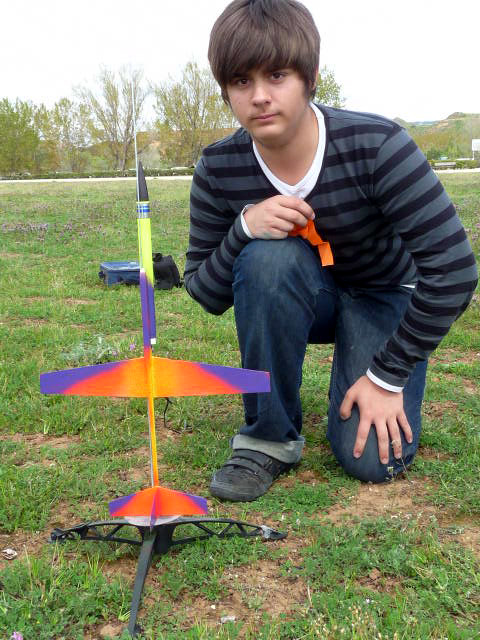 Yo ya había visto ese modelo por Internet, pero nunca he visto volar uno. Los planeadores-cohete ofrecen mucha resistencia al aire, tienen un CP muy próximo al CG y tienen que utilizar un motor que se queme de forma progresiva o neutra, y no de forma regresiva. Por lo que tengo entendido, los planeadores-cohete es mejor lanzarlos con la guía (o rampa) inclinada 45º ó 60º respecto del suelo. Otra cosa muy distinta son los cohetes con transbordador del tipo Shuttle, suben más alto y pueden utilizar motores regresivos sin problemas. Imagino que ya habrás leído mi manual.