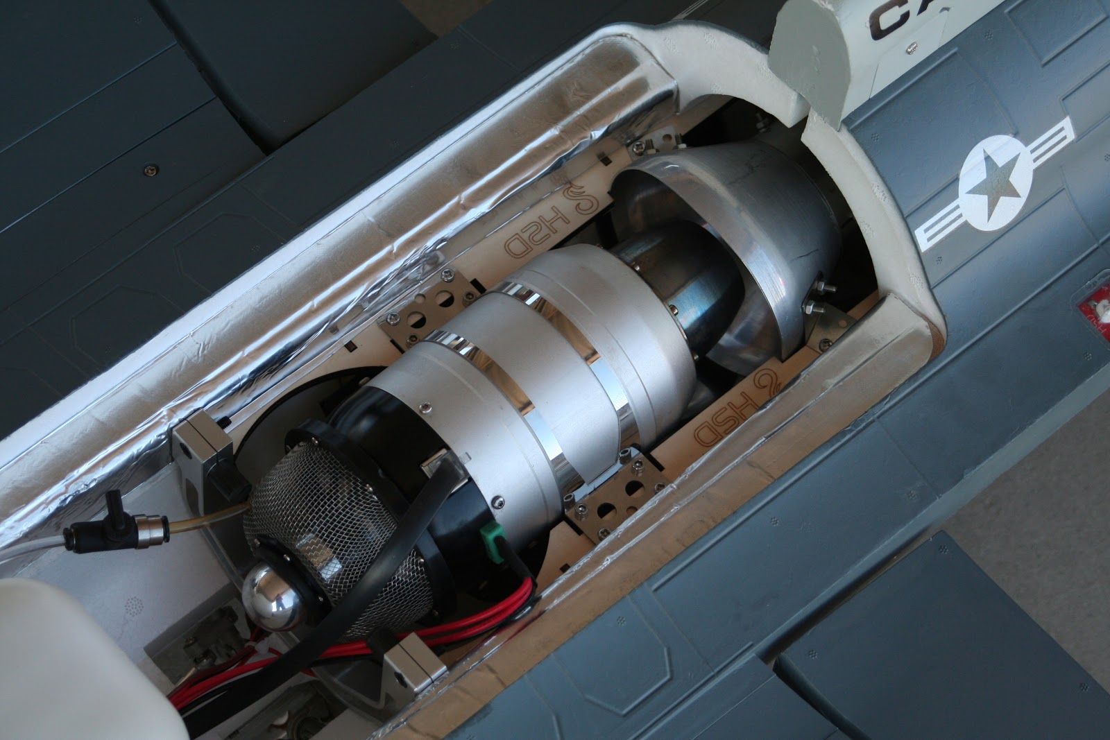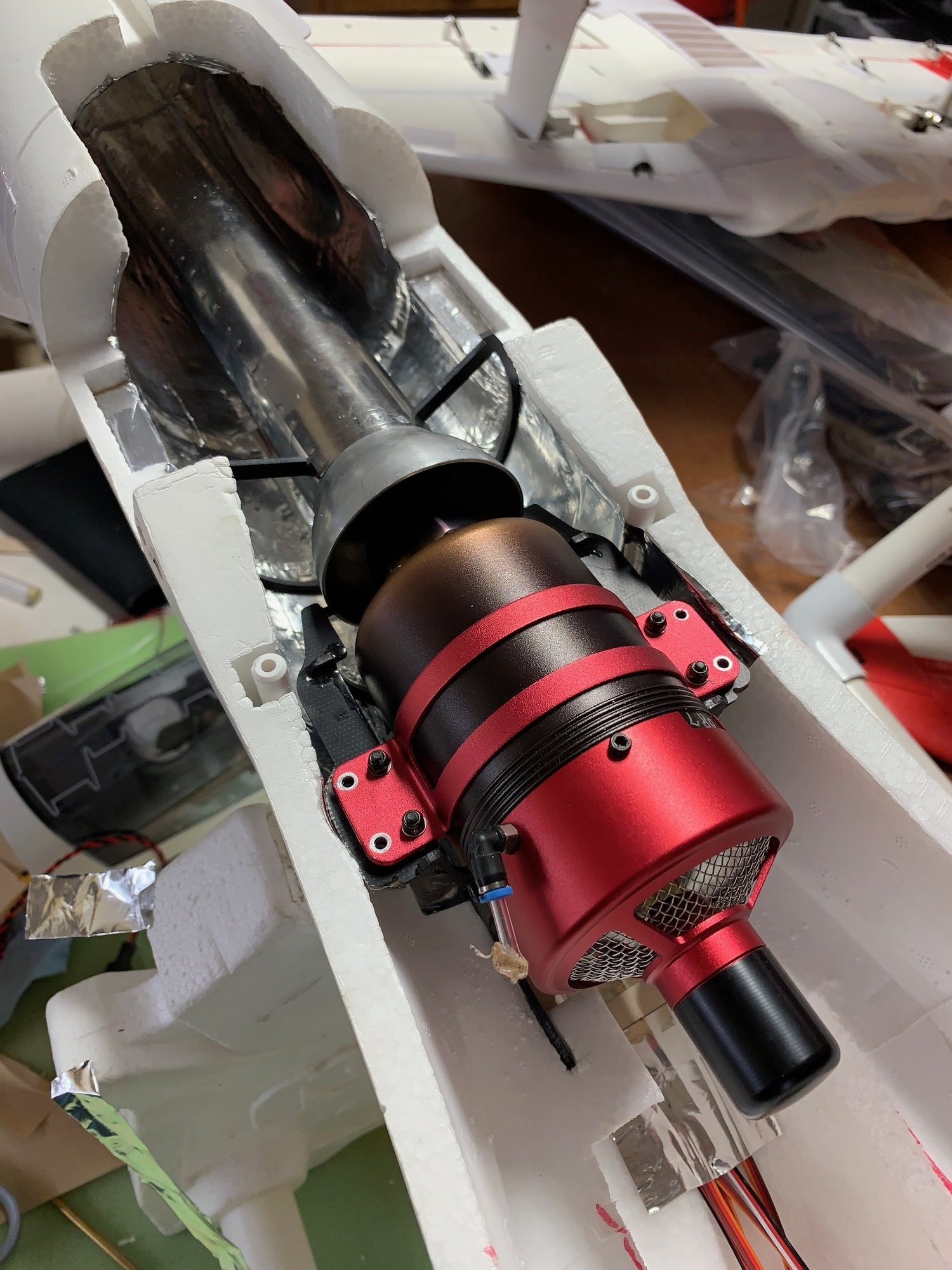 Yo tengo el mismo avión y quiero montar la misma turbina, pero la pipa que tengo de Grumania és la de 40 mm de diámetro y sirve para turbinas de 45 a 70 Nw. Será la misma distancia de montaje que la tuya ?