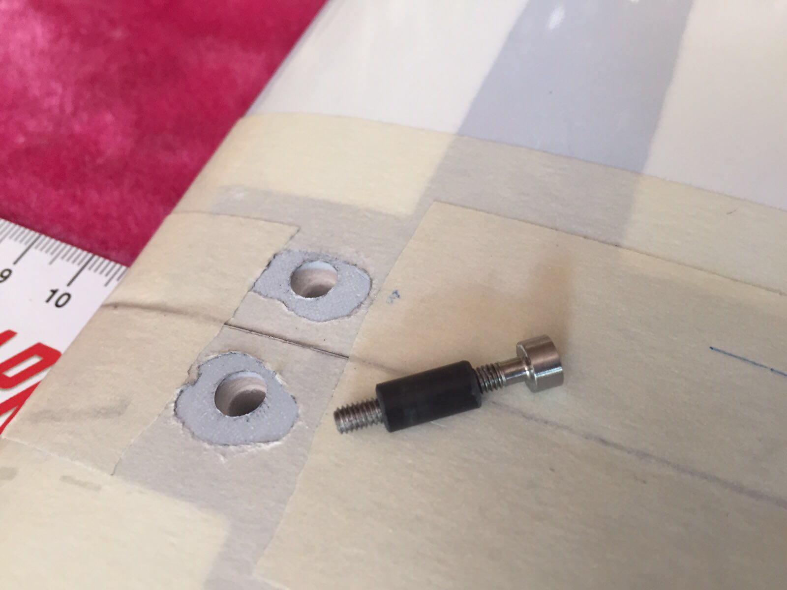 En el fuse, en la base donde van roscadas las alas le pongo unas galletas de contrachapado pegadas con epoxy y las tuercas empotradas de métrica 3
