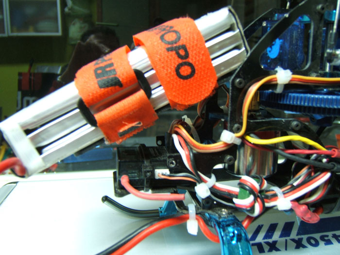 La diferencia a la hora de la verdad es que la bateria no sobresale y no toca el canopy y que el CG ha quedado casi un centimetro por encima de como estaba con lo cual le resulta mucho mas facil dar la vuelta sobre si mismo.