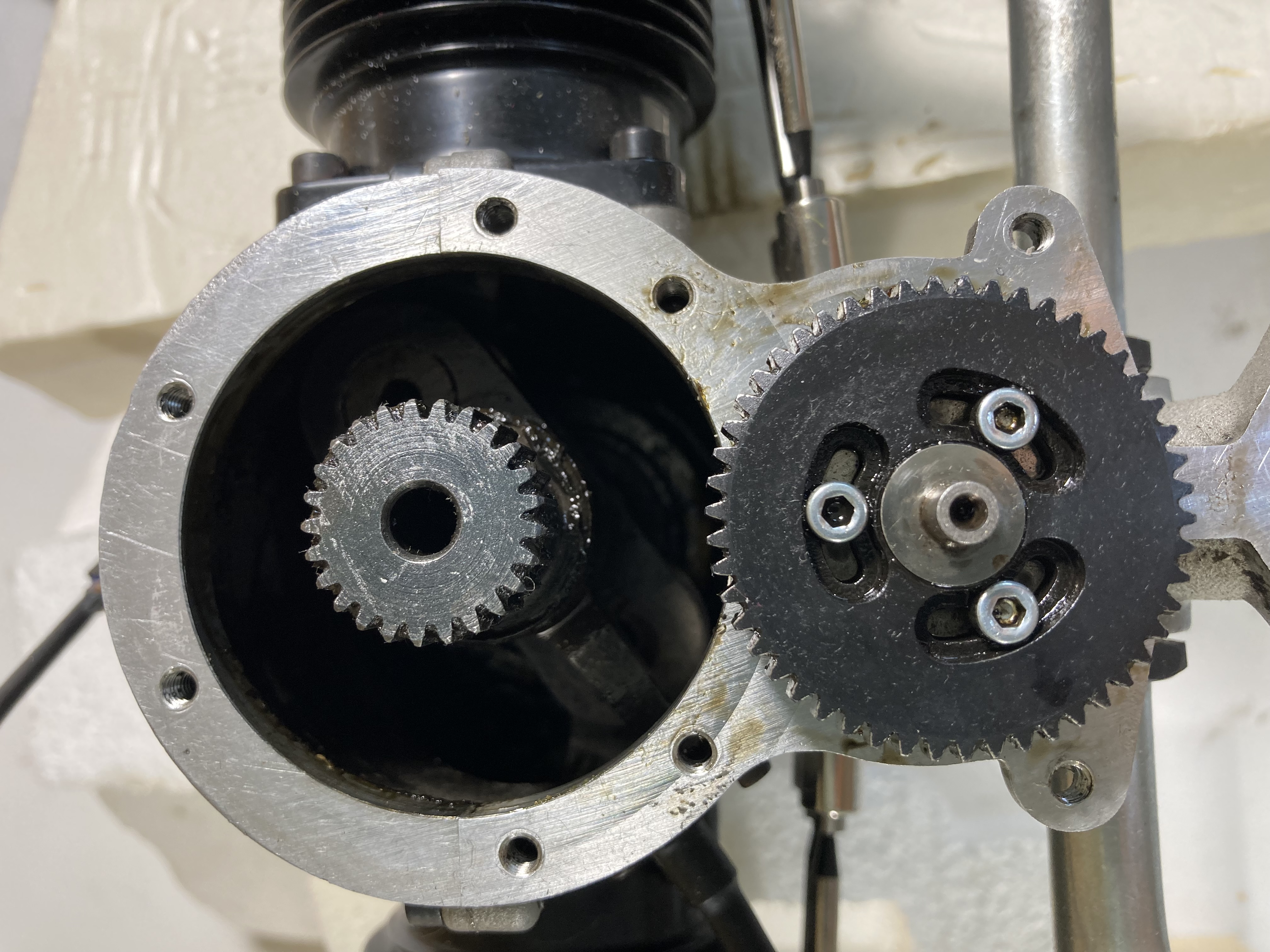 Buenas a todos, después de 8 años de volar este motor desmonté la tapa trasera, me daba la sensación de que notava demasiado los engranajes del árbol de levas y desmonte para poner un poco de grasa, hay un engranaje que une el eje del cigueñal con el eje del árbol de levas...pero... no hay ninguna marca!!!