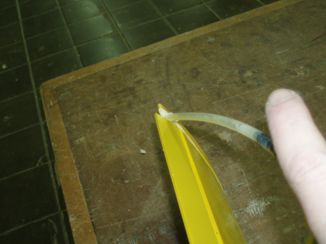 Aprovechamos el epoxi y mientras pegamos los refuerzos, pegamos tambien la bancada del servo del tren retractil.