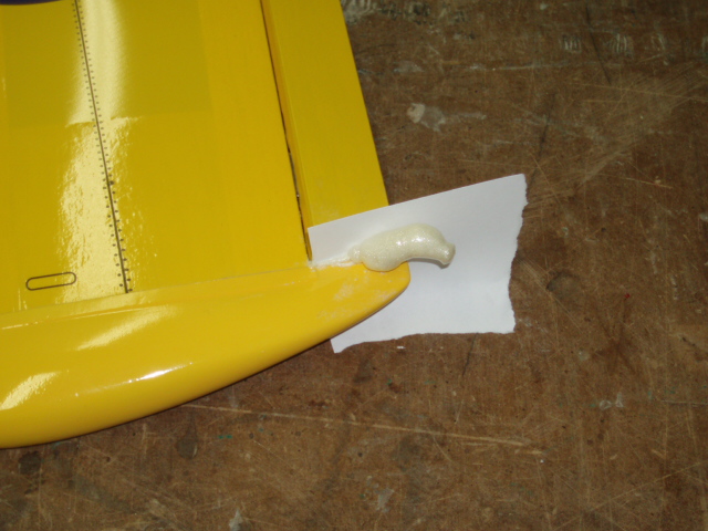 He puesto un papel para que la espuma que rebose no nos pegue el aleron, dejamos que frague, si humedeceis un poquito hace la piel enseguida.