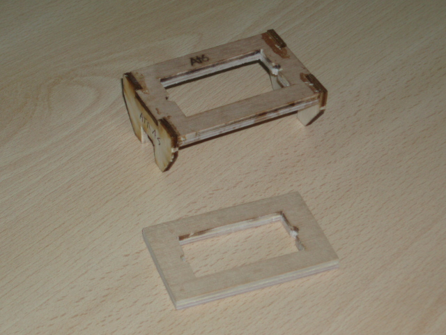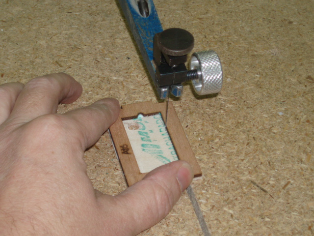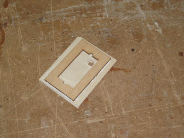 He aqui el tablero pegado y seco, ademas ya le hemos hecho un agujero para pasar el hilo de la sierra.