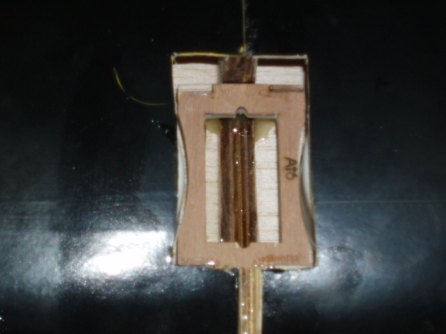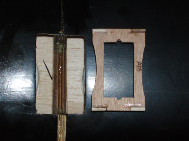 Segimos dando epoxi, ahora en toda la cuaderna y en cantidad, montamos el conjunto, sujetamos como lo habiamos hecho en el premontaje, y con un poco de alcohol limpiamos el epoxi sobrante.