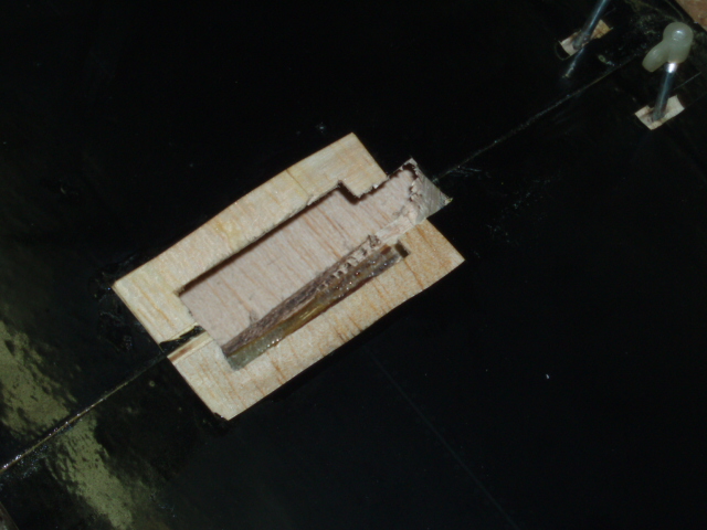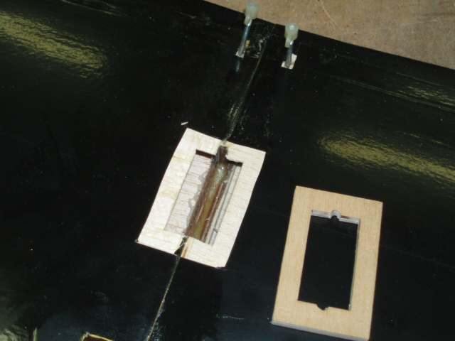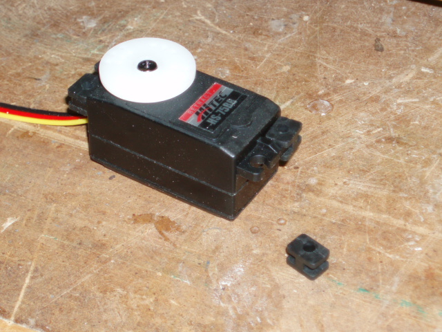 Aqui podeis apreciar el hueco que he hecho para pasar el cable del servo y como quedara cuando pegemos la bancada.