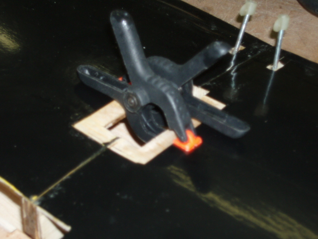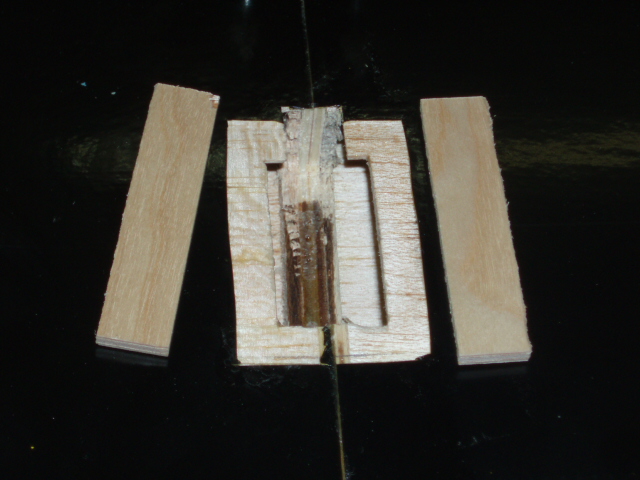 Los refuerzos que le pondre por abajo a la balsa, esto seria mucho mejor hacerlo antes de pegar las semialas, mas facil, mas comodo y seguramente quedaria mejor, asi que ya sabeis lo que teneis que hacer si vais a montar un avion como este, supongo que los de VQ seran todos parecidos.