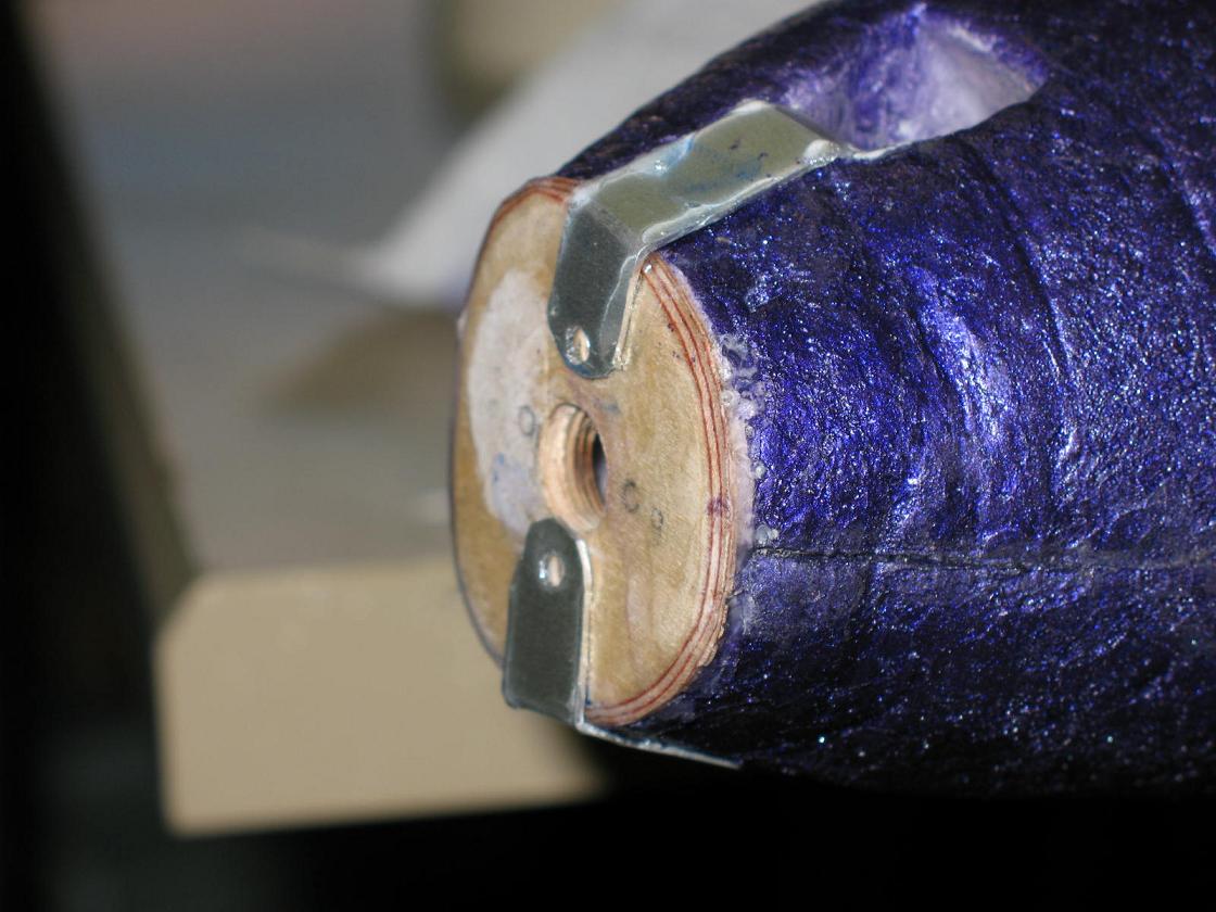 Si vas a hacer la bancada de chapa procura hacerla como aparece en la foto antes de montar las dos mitades del avion pues hay que rebajar en la punta material para que quepa, hacemos una especie de cilindro de 35 mm de diametro, dentro va el motor e imitamos las pestañitas de conjunto motor 400 - reductora de serie, si ves en la foto se puede sacar el conjunto motor-bancada, asunto este importante.