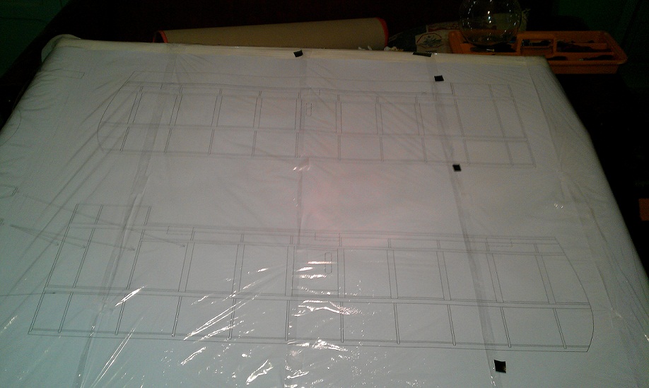 Bueno, hoy por fin he comenzado con la construccion del avion!! Me he preparado la mesa de trabajo, colocado los planos de las alas en la mesa, cubierto con plastico (film transparente) para que durante el montaje no se dañen los planos, he dibujado las piezas del morro del fuselaje y las costillas del mismo y he cortado uno de los lados del fuselaje. Se que ha sido poco, pero bueno, hacia años que no cogia una sierra de marqueteria y al principio me resultaba extraño, jajajaja. Las piezas estas las he dibujado sobre contrachapado, ya que el fuselaje tiene que ser mas duro para resistir futuros aporrizajes!! Mañana proseguiré.