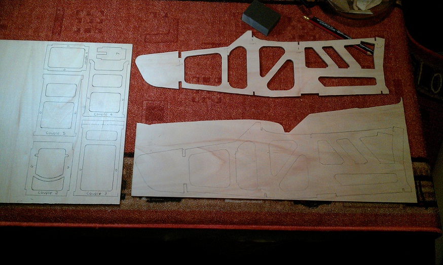 Lo que hemos hecho hasta hoy no tengo ninguna foto, pero vamos, ya tenemos cortados los dos laterales del fuselaje y todas las costillas de las alas. Coyotefer, como soy novato me ciño a lo que dicen los planos, y para el fuselaje y las 3 primeras costillas he usado contrachapado y para el resto del ala madera d balsa, aunque me parece un coñazo trabajar con ella, debido a que se astilla con mirarlo. Hemos cortado las costillas de balsa y las hemos puesto todas juntas para lijarlas (trabajo que ha realizado mi primo Elga) no se como quedará al final, porque si le metes mucho de lija ya no queda del tamaño que viene en el plano, asi que no se si las tendremos que cortar de nuevo. Pero vamos, esto va para delante. Aqui subo un par de fotos de lo que hice el domingo.