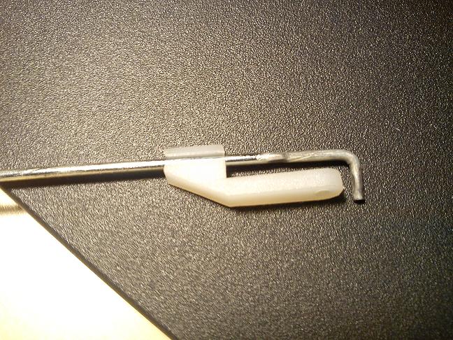 buenas a todos..con tu permiso Jesús, yo voy a recomendar otra cosa y una razón..aver si estás de acuerdo..la transmisión con "bowden" (que no sabía que se llamara así,gracias) yo creo que hay que ponerla antes de cerrar el fuselaje para poder fijarlo en varios puntos a lo largo de su recorrido porque si no al mandar el servo y ofrecer resistencia la superficie de mando se comba por el medio perdiendo mucho mando, si no todo, es una avión largo para tanto recorrido de la varilla sin apoyos,(en mi opinión),yo personalmente haría las transmisiones al estilo clásico con un listoncillo de pino del estilo del que ustilizásteis para sujetar las costillas por arriba y por abajo (5x5 +/-) o en su defecto uno de balsa un poco mas grueso, la prueba es muy sencilla, lo cortáis de la longitud aprox. y presionáis las puntas aver cuanto se comba..respecto a las uniones con servo y horns el quinlik que os ha enseñado Jesús es ideal por que se monta y desmonta rápido no rompe y es regulable, en cambio, en el servo yo pondría esto otro que os adjunto, es sencillísimo, doblas la varilla a 90º y le colocas la pieza de teflón para que no se salga del brazo, para regular del otro extremo y finalmente con el trim de la emisora, la única pega que tiene esto es que para acoplar el quinlik a la varilla debéis roscarla, si la ponéis de latón es sencillísimo hacer la rosca con el útil (una terraja) que ya la venden hasta los chinos y se utiliza muy amenudo en nuestras construcciones..resumen de mi método: servo--> trozo de varilla doblada (latón) fijada a listón y su pieza de teflón(si no sabéis como se explica)--> listón-->trozo de varilla con rosca-->quiklic-->horn...pongo 2 fotos, espero haberme explicado..