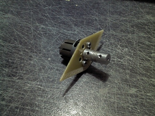 Atornillamos la cuaderna al motor, le ponemos un acoplamiento para el eje y un prisionero detras.