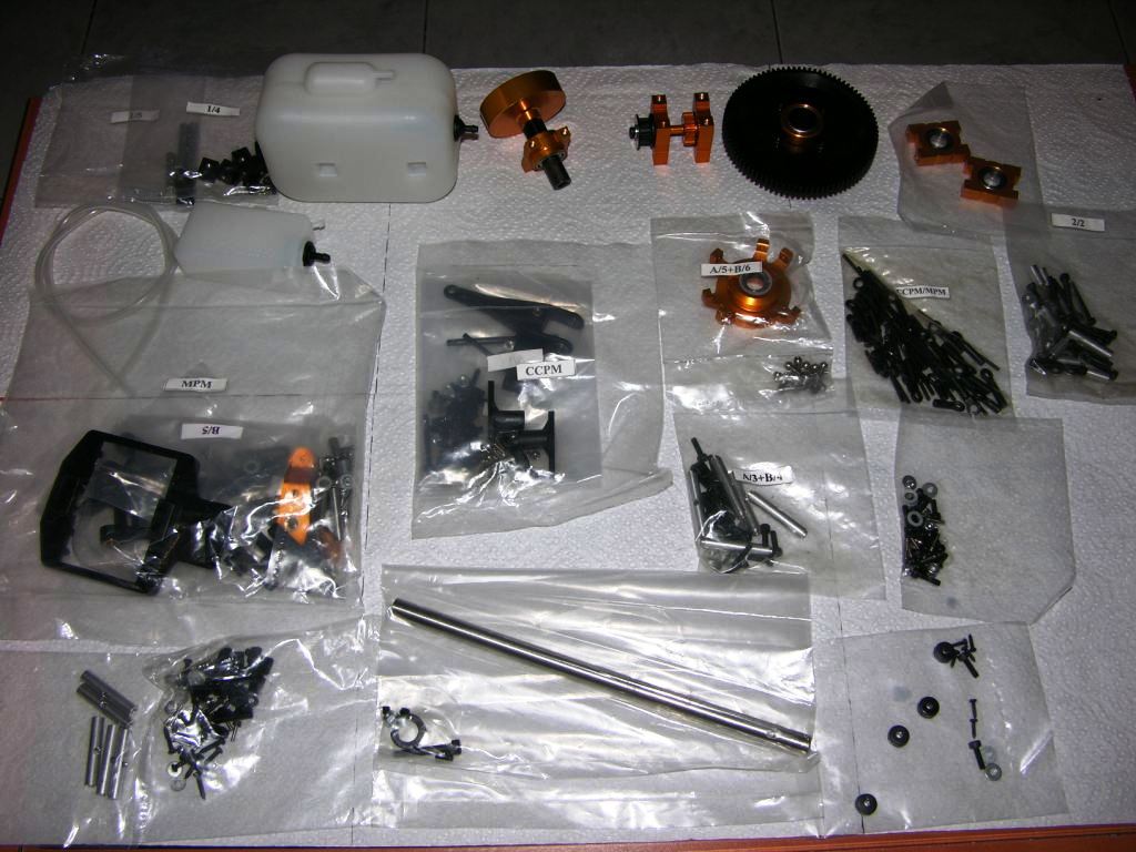 Bueno pues ya estamos, voy a exponer y explicar paso a paso el montaje de este Hurrican 50. En primer lugar lo que nos encontramos cuando abrimos la caja del Kit. Nos vienen varias bolsas, cada una con una parte del montaje del helicoptero, solo hay que seguir el manual y cojer el numero y la letra de la bolsa para montar cada paso correctamente, aqui os dejo las fotos hasta el comienzo del montaje del chasis. Seguire montando hoy, y os subire las fotos