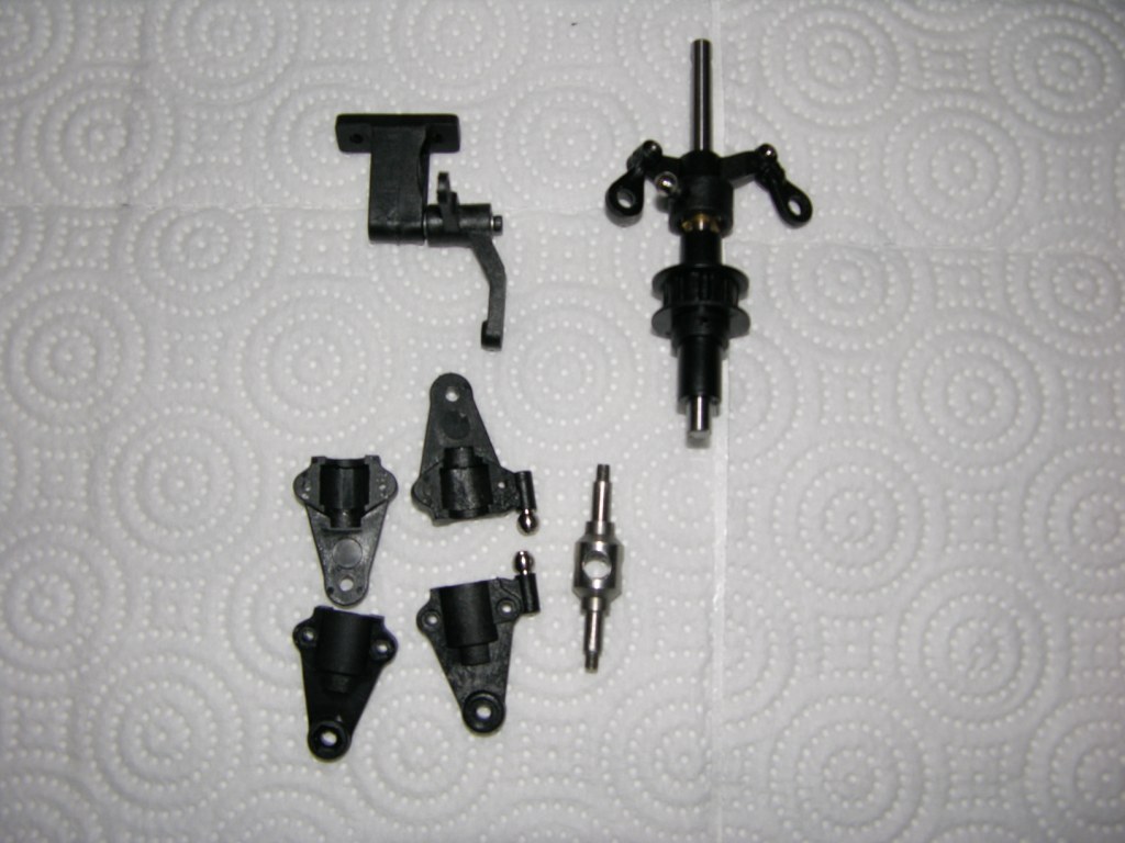 con esto ya tenemos las piezas de control del plato ciclico, compeltamente montadas. Destacar para los menos expertos que el eje del swash control base, tiene unos rebajes planos y que los tornillos hay que meterlos en esa superficie plana