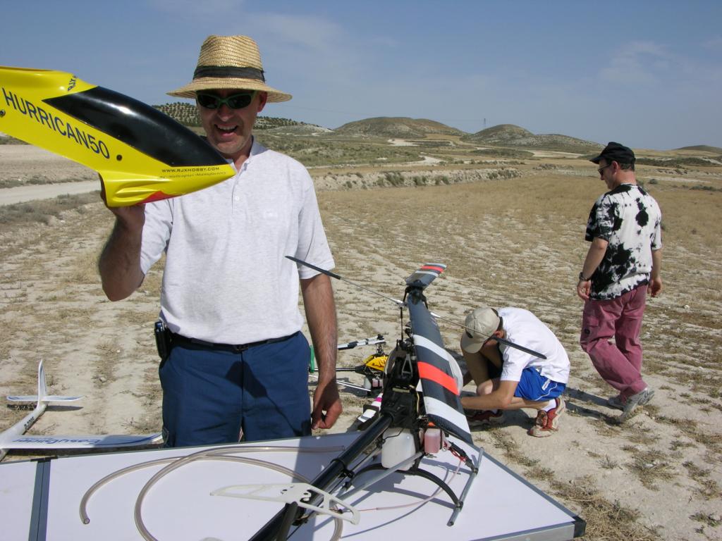 Dia de Estreno en el campo de vuelo, me acompañan mis amigos de Huesca, en nuestro campo de Villamayor en Zaragoza. El vuelo es todo un exito, el helicoptero funciona perfectamente, se realizan todo tipo de maniobras acrobaticas, y autorrotaciones y jejejeje, nos lo llevamos al final de la tarde entero a casa. Un saludo muy especial a Bernado, Jose luis, Ernesto y su novia que me acompañaron en el estreno, ahhhhhh y a Laica, mi perra boxer, que soporto un dia de calor extraordinario y como siempre fue el alma de la fiesta.