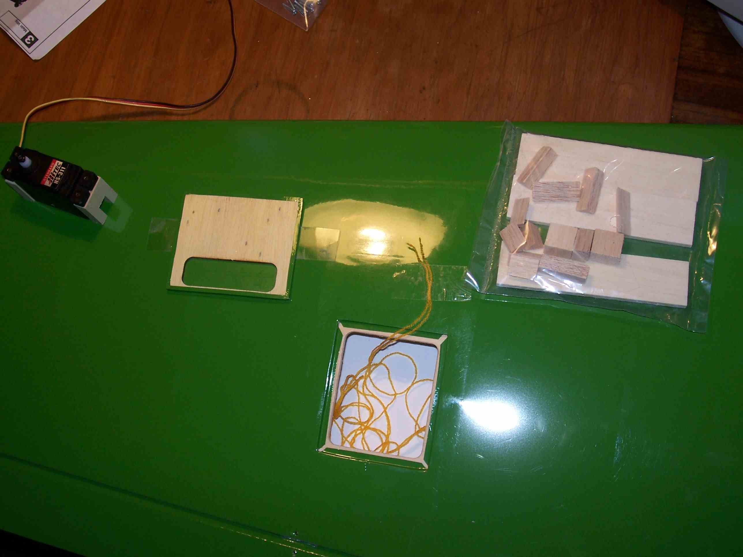 esa bolsita con piececitas de madera que pones en la bolsa yo tampoco sé todavía para que son. De hecho, tal cual me llegó la bolsita, tal cual está. Yo veo que tal como tienes el servo ya lo puedes colocar. todo es muy sencillo en este avión. guíate mas por la lógica y el sentido común que por otra cosa.
