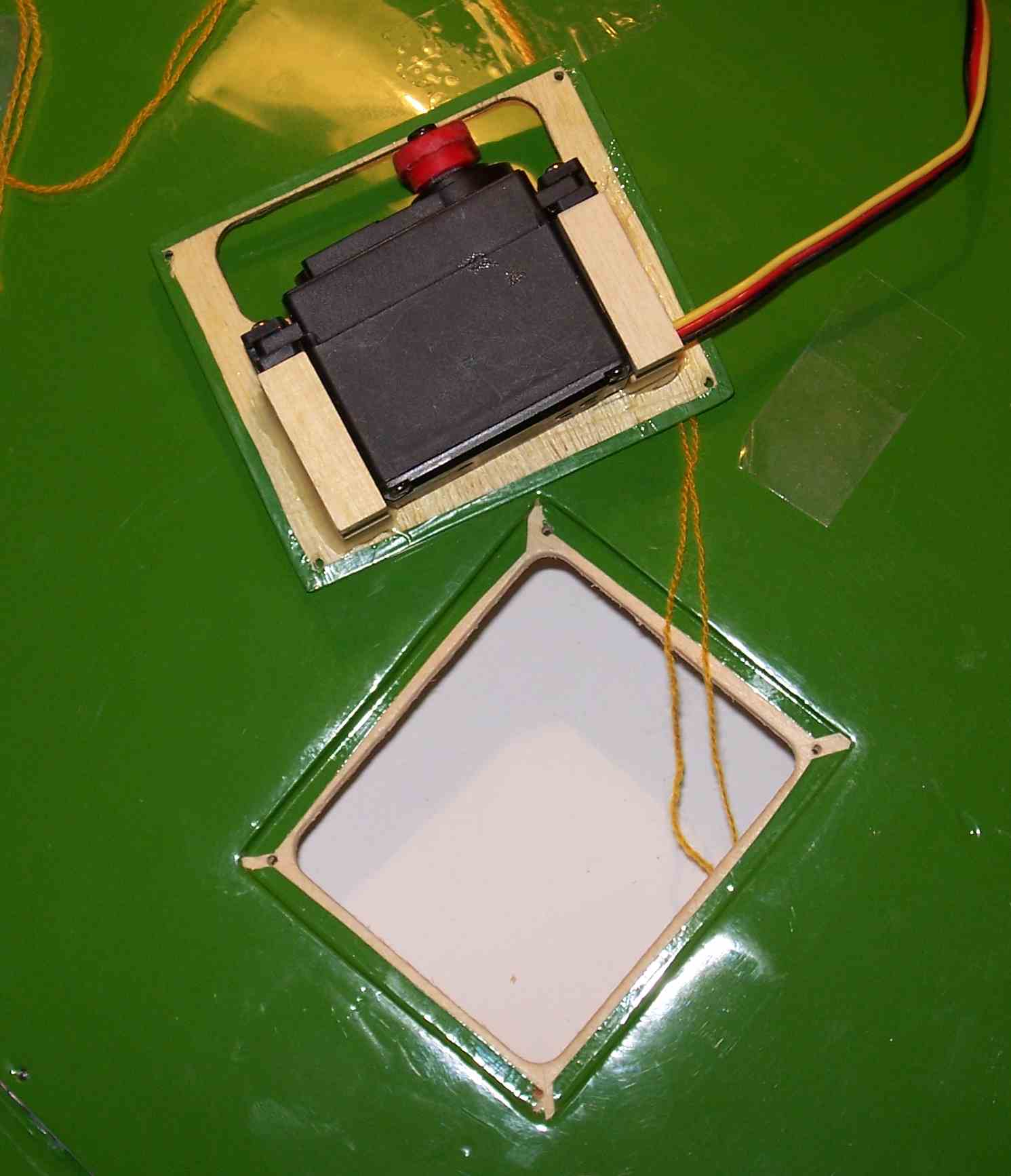 y si tienes que agrandar un poco la ventanita que te viene hecha para que pueda asomar la cabeza del servo,pues se agranda.