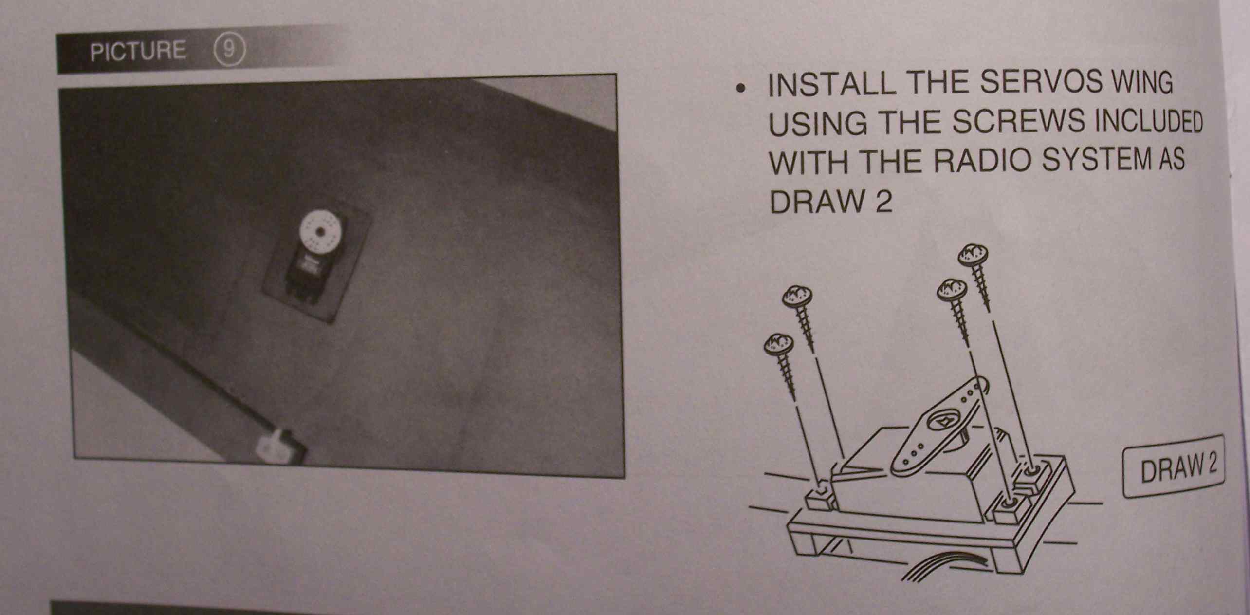 Aquí viene la explicación del manual indicando como se colocan los servos en el alerón (sic)