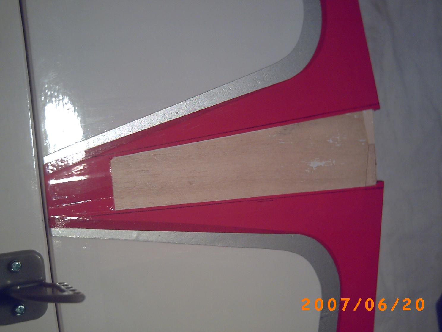 Hoy he empezado a colocar el timon de profundidad. Lo primero indicar, que viene de fabrica, para que mediante 2 tornillos, se coga al fuselaje. Al igual que con el ala, yo voy a pegarlo con epoxy, ademas de poner los tornillos. Para que las piezas queden bien unidas, he quitado el recubrimiento tanto del intrados como del extrados del timon de profundidad, como podeis ver en las fotos. Asi, uniran madera contra madera :D . Las marcas/lineas que veis, las he hecho, poniendo el timon en el fuselaje y marcando por fuera con un boli de punta fina. De aqui, para dentro hay que quitar el recubrimiento. Como hay que contar con el grosor de la trazada del boli, he cortado suavemente con un cutter afilado por las marcas. El acabado, como lo veis. Ahora como con las alas; preparar el epoxy extender por la zona sin "monocote" y dejar secar. Esta union es tan critica o mas que las de las alas, ya que si no está a escuadra con el fuselaje, o no guarda la misma distancia desde la punta exterior del timon (de la parte fija) al fuselaje en su parte central el avion, puede tener unos efectos muy feos en vuelo. Segun el "cutre-dibujo" se debe cumplir que A=A´.