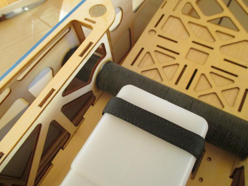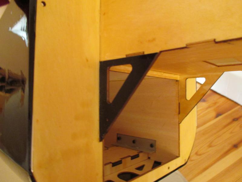 Para la instalacion del servo de gas, ya viene pegada una estructura de madera para la colocacion del servo, lo unico que tendremos que hacer, será pegar o atornillar esa bancada a los laterales del fuselaje, en mi caso, opte por pegarla con epoxy, y con un taco de lija evitamos que se mueva mientras seca.