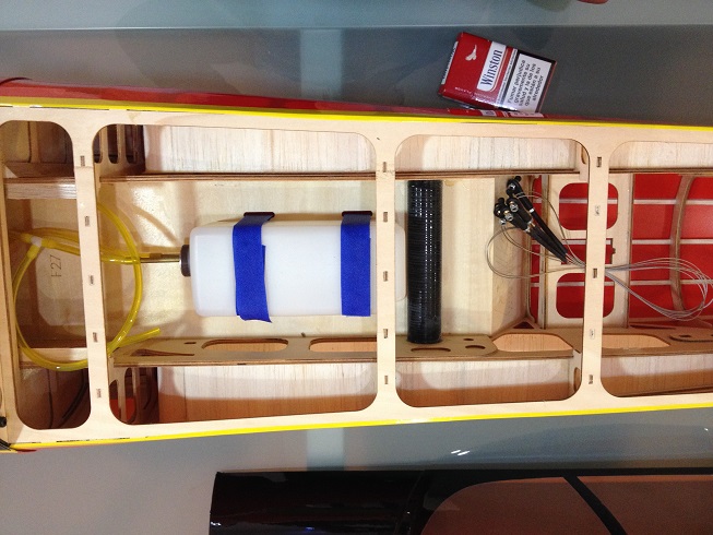 El avion viene con hueco para la instalacion del canister, un detalle que me gusto mucho es que trae varia cuadernas de diferentes tamaños, para la instalacion del canister, estas son moviles para facilitar la instalacion de cualquier tipo de canister, solo hace falta atornillarlas, tambien tiene un pequeño acceso-respiro, para facilitar aun mas la tarea. La carena apenas se agujerea, ya que coge todo dentro de ella.