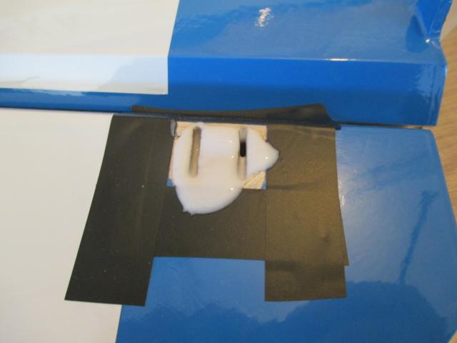 Para facilitar el transporte, la direccion viene desmontada, pero ya agujereada para la instalacion de la bisagras, tan solo hace falta añadir una gota de aceite en el eje y pegarlas a 90º con respecto a la vertical del fuselaje, con una escuadra nos quedará perfecto.