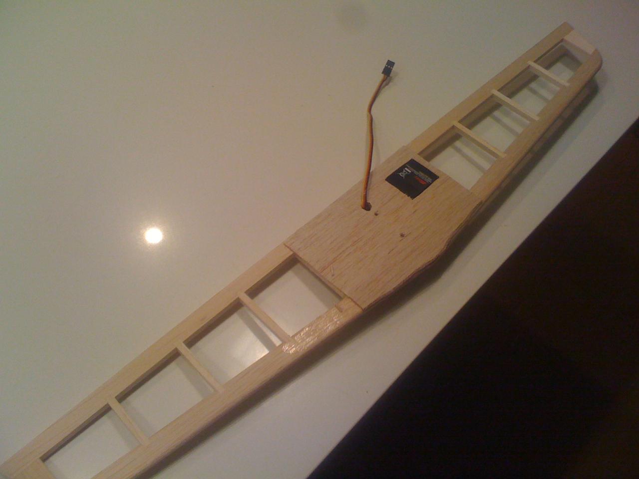 aun que la configuracion original viene para montar profundidaf y timon en el fuse, yo para dejar sitio para equipo fpv traje ambos a la cola del velero, uno dentro del estabiulizador horizontal y el otro en el vertical.