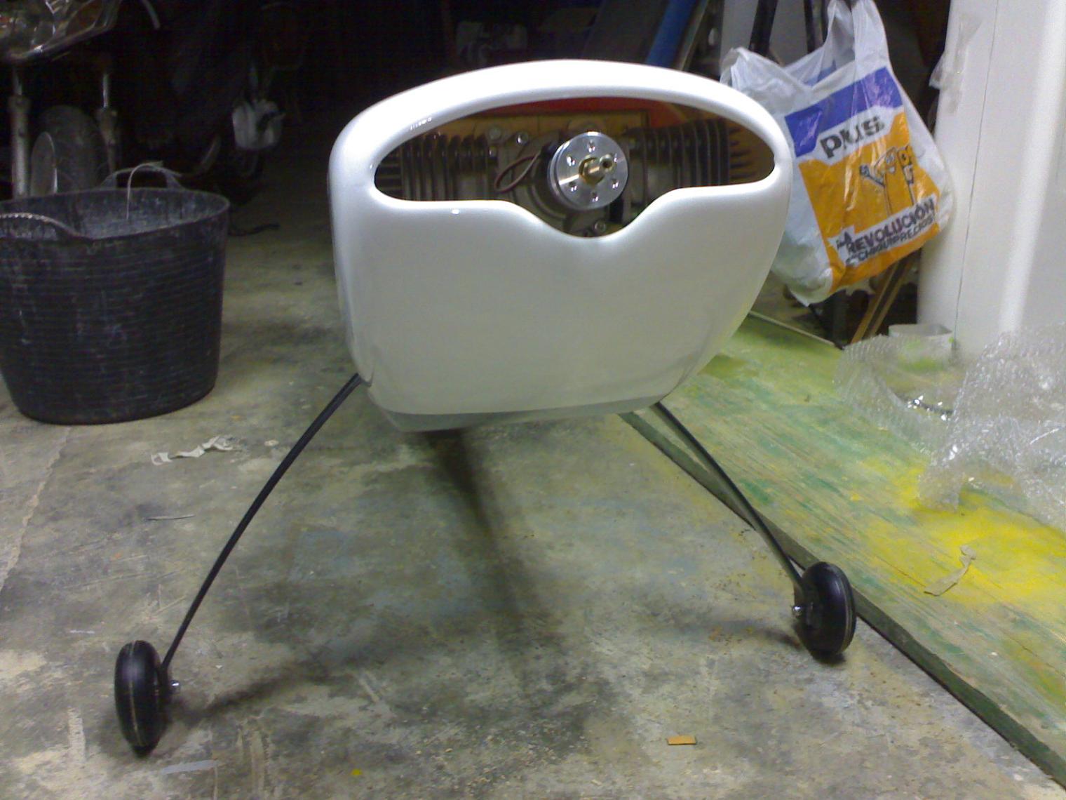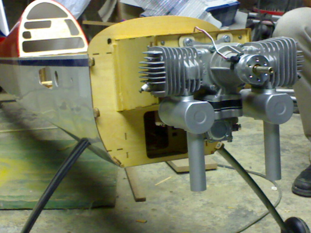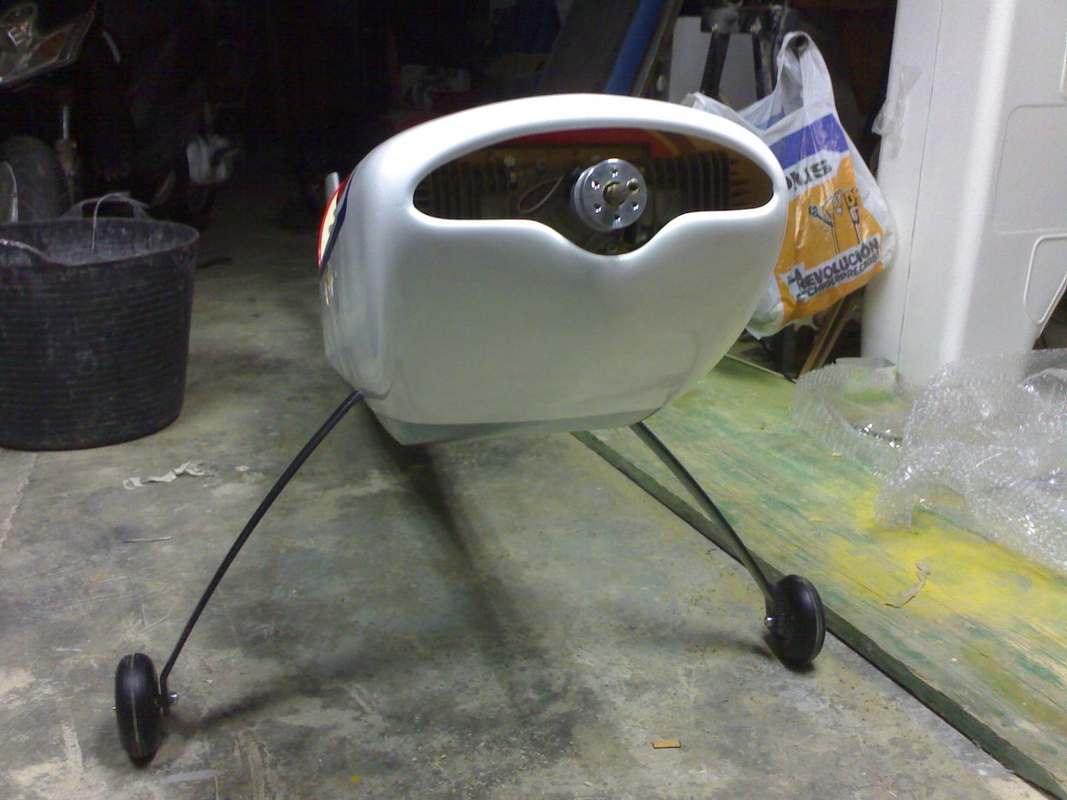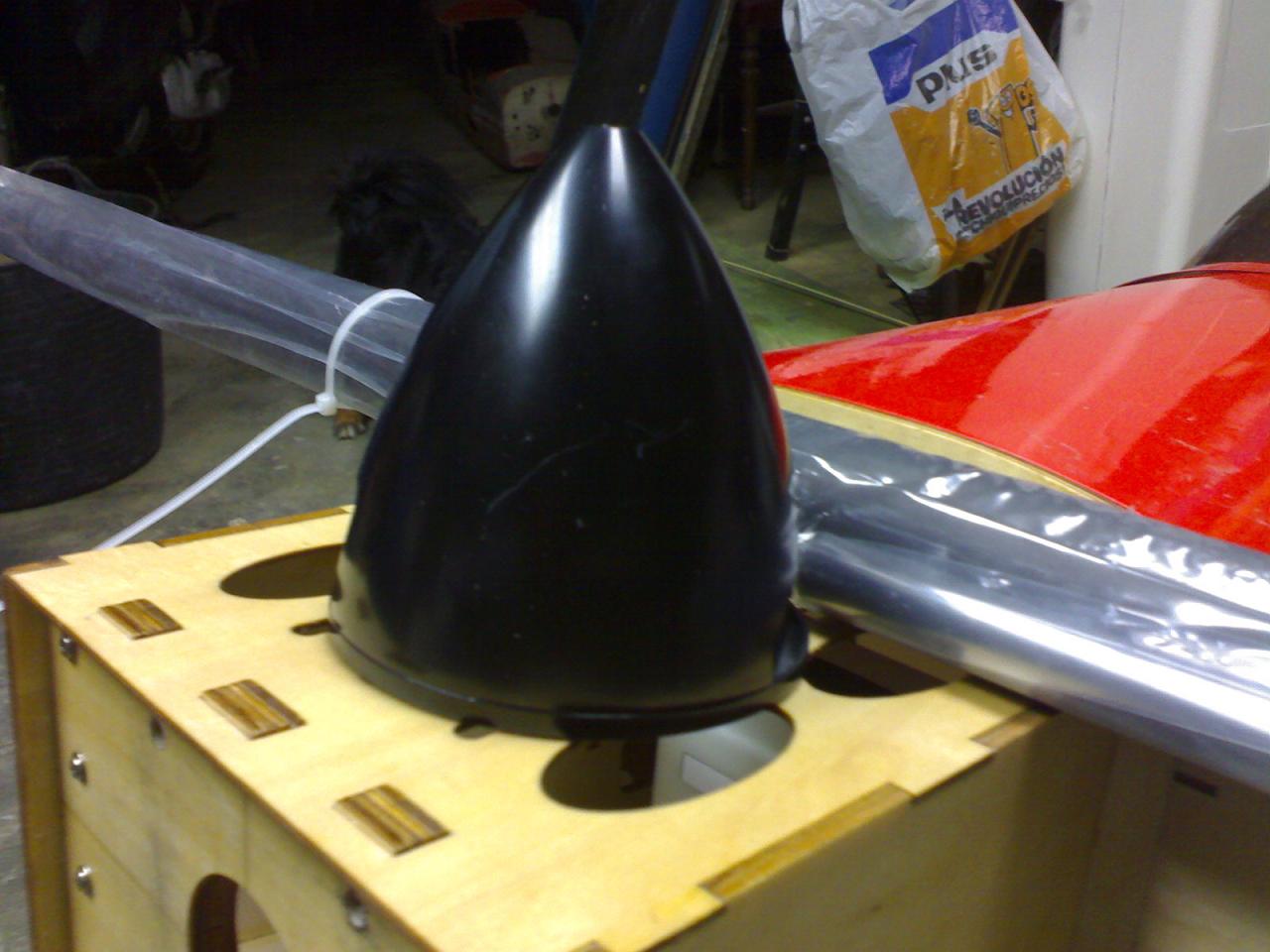 Ahora , se desarma la bomba electrica para quitar todo el plastico que lleva que pesa la leche(Tambien se podria hacer con la propia bomba pero saldria bastante pesado) sacamos la piececita que bombea marron con el hierrecito que lleva y el motor todo junto lo colocamos en el caconcito y lo pegames todo con epoxy de 30 minutos lo mejor posible que quede bien seguro , conectamos el variador al motor pequeñin de la bomba y un cable para las baterias y el otro al receptor , (una vez conectado en el canal deseado del receptor se tiene que cortar un cable de la bomba electrica si no me equivoco el blanco te lo tengo que confirar mirandolo) y ahora nos vamos al menu de nuestra emisora y ha mezclas y configuramos una mezcla del acelerador y el canal de nuestra bomba de humo y le hacemos una mezcla a nuestro gusto para que cuando aceleremos progresivamente se revolucione mas el motor y seleciona tambien un boton para activar y desactivar la bomba , ahora instalamos el depositos con sus correspondientes macarrones y de la bomba sacamos un macarron al pendulo del deposito y otro al escape en que tenemos una simple toma hecha como en los motores glow haciendo un taladro con su toma y tuerca (bastante laborioso poner la tuerca por dentro jeje) y uno de los macarrones a la toma (todos en tigón excepto el que conecta directamente a la toma que lo llevo de un material raro que no recuerdo