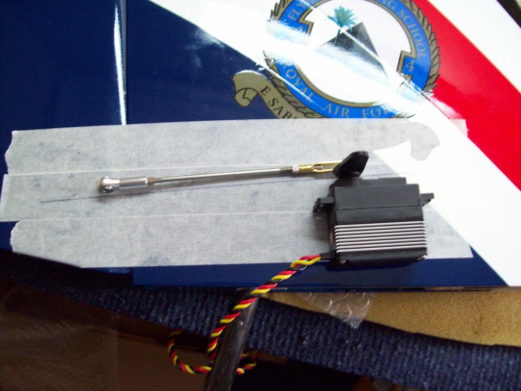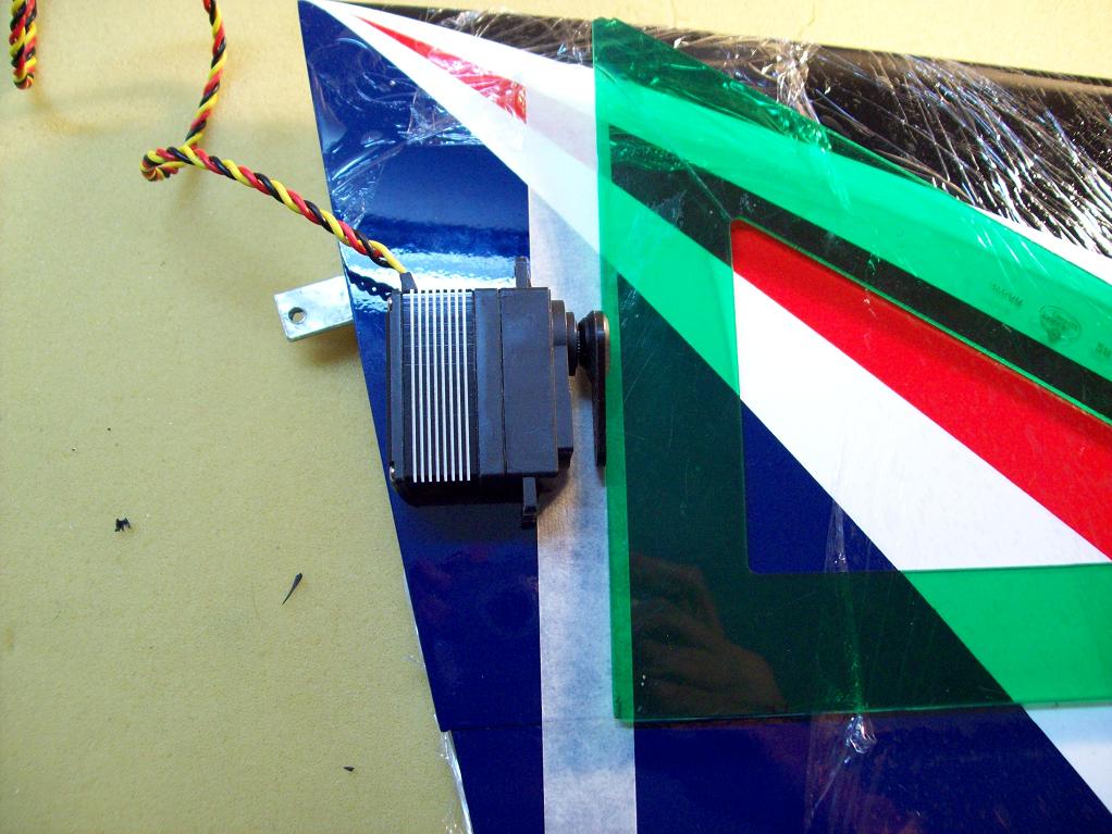 La colocación del servo en el tren delantero tiene poco misterio, no obstante subo algunas fotos para que se aprecie la conexión del brazo del servo a la pata del tren. El empuje no es perpendicular al brazo del servo porque observé que apenas si tenía recorrido la rueda.