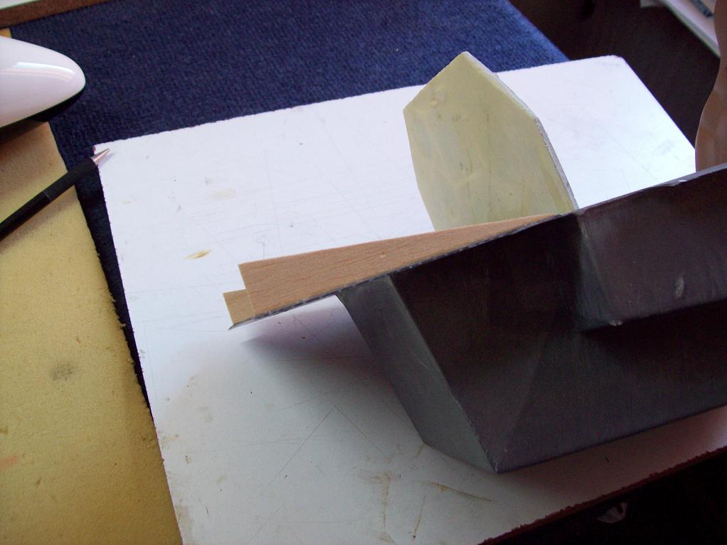 En los laterales de las luces van igual, con dos trozos de balsa he hecho la forma de la costilla de la parte delantera y las he pegado, le he dado la imprimación y después la pintura.
