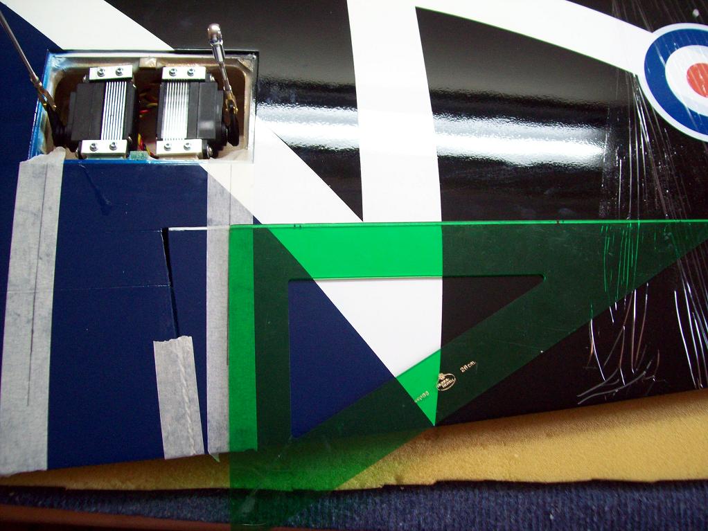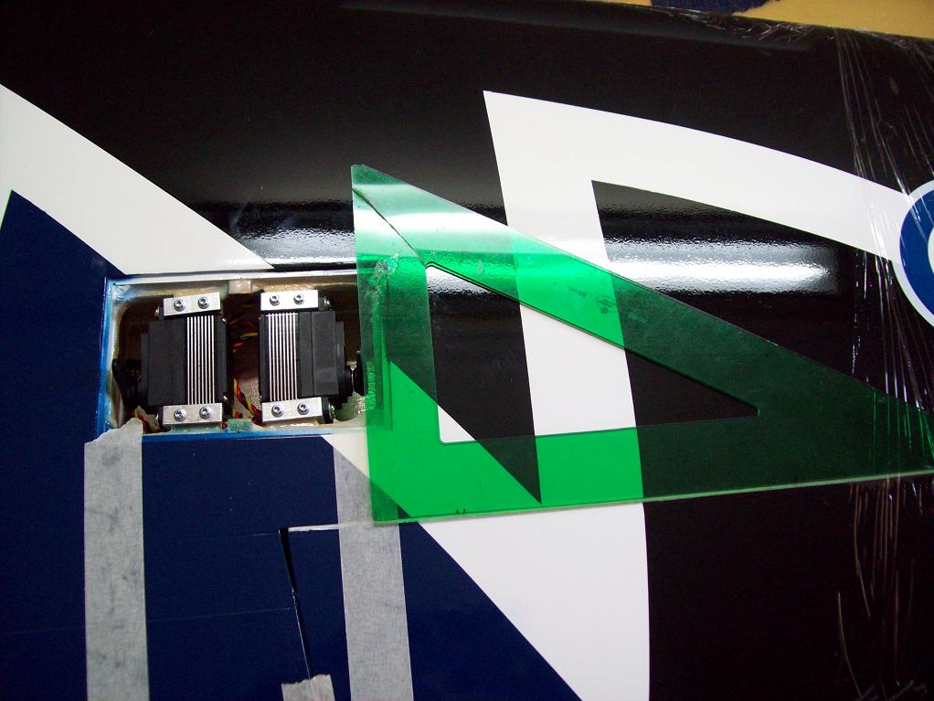 Al igual que al viper de 2 metros cuando se pegan las bisagras queda mucho espárrago al aire y para evitar esto le he suplementado con unos cuadraditos de 3 mm de contrachapado que es bastante fuerte pero que pesa muy poco, con eso evitamos que el espárrago tenga flexibilidad quedando mucho mejor sujeta la parte del timón que se mueve.