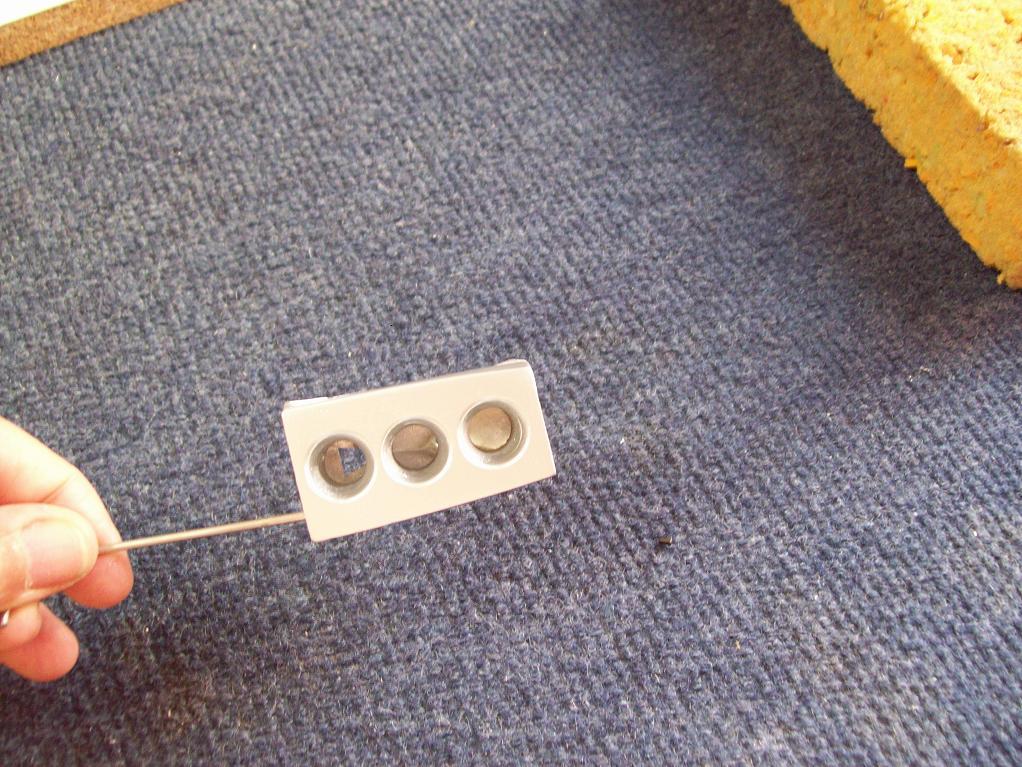 En éste, los tornillos roscan en la fibra para ello hay que hacer el taladro un pelín mas pequeño que el grosor del tornillo para que puedan roscar.