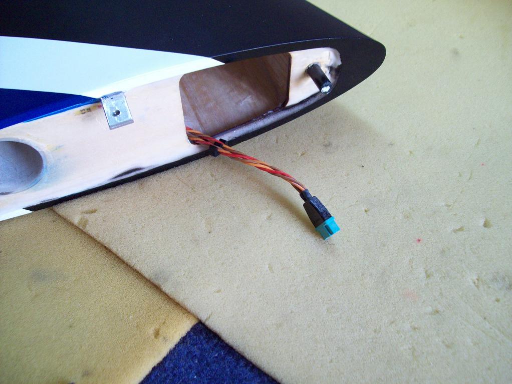 Aquí tenéis algunas fotografías de las conexiones de los servos de los timones con el fuselaje y poco hay que explicar, únicamente decir que los conectores hembra los sujeto al fuselaje con loctite que pega bastante bien esta clase de material.