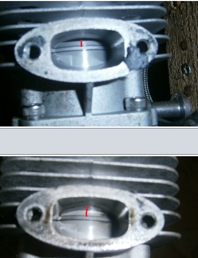 Yo a simple vista tampoco veo que tan claro que la distancia entre el segmento y el borde de la lumbrera de escape sea tan diferente, porqué uno está limpito y se ven muy bien los bordes y otro está sucio y no se ven tan definidos los bordes.