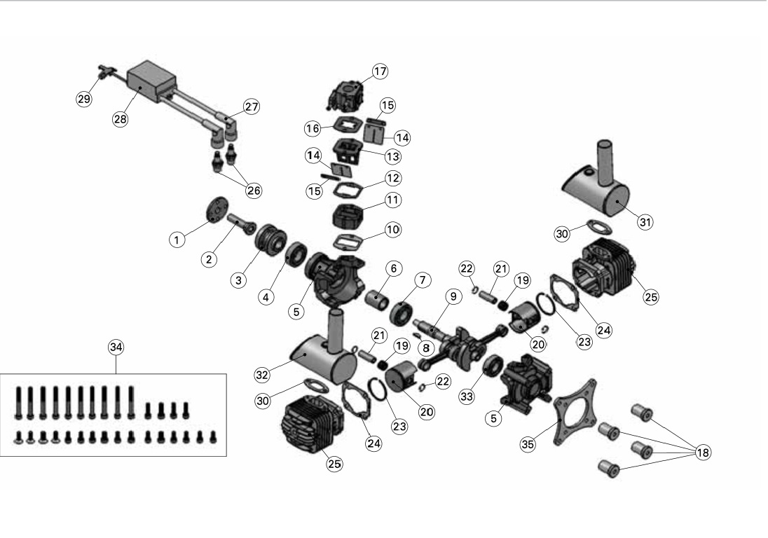 Sobre el despiece del DLE60twin que es un primo muy cercano a este :mrgreen: se ve mejor.