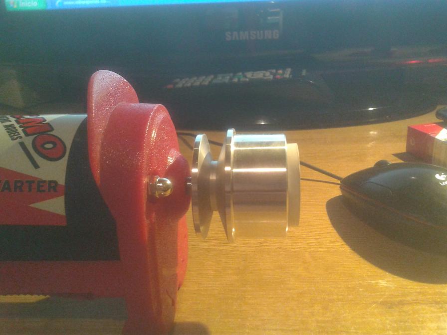 hola, alguien me puede ayudar, se me a soltado o roto el sistema de arranque el que es de tirar, e mirado por internet y e visto que hay una pieza de aluminio que es redonda es una polea para luego usar un arrancador electrico.