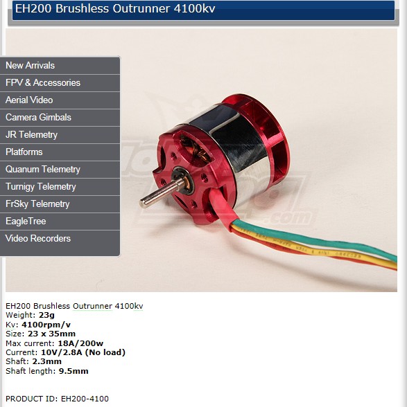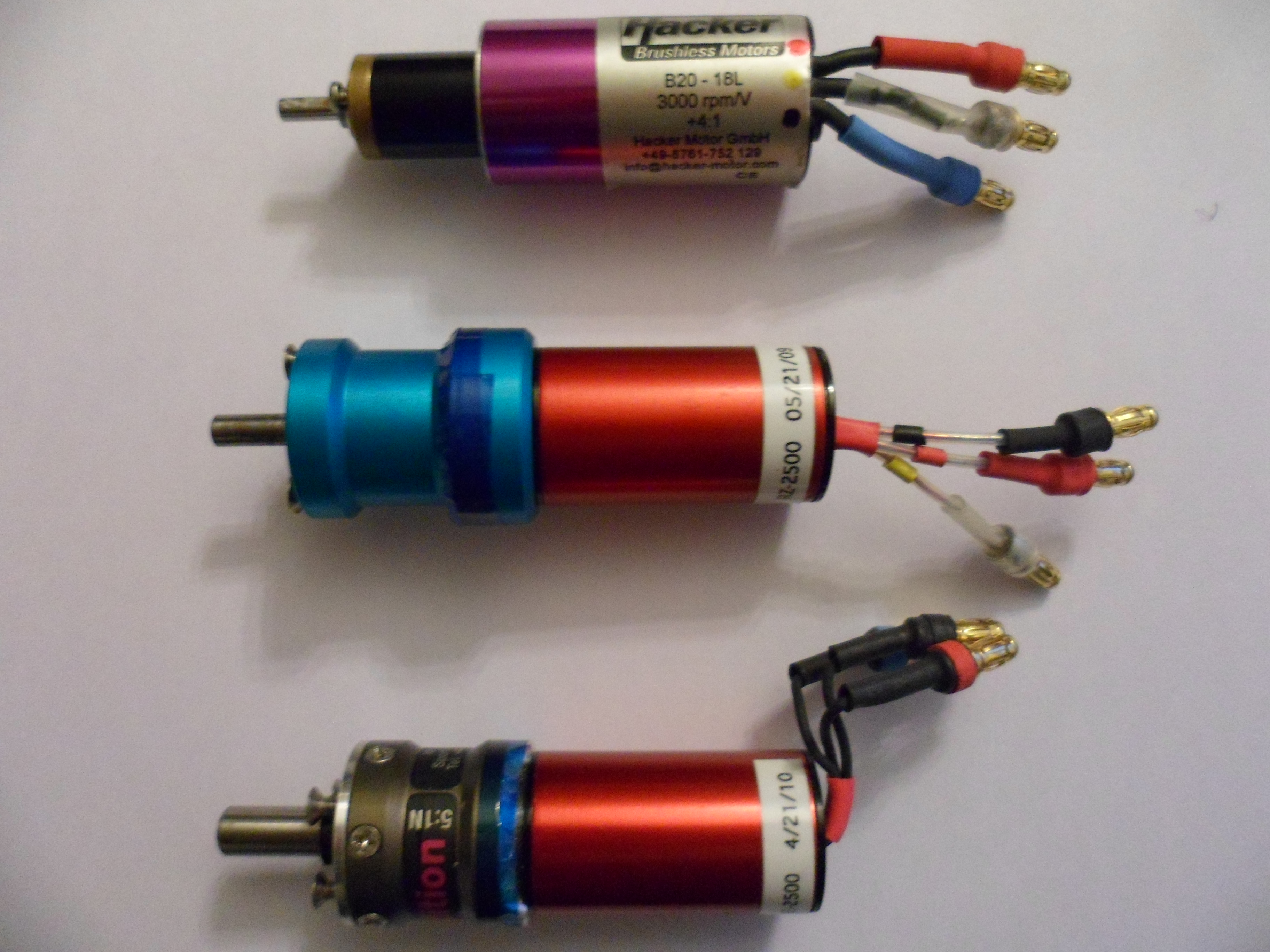 Algunas de las combinaciones de motores y reductoras usados en 50 g