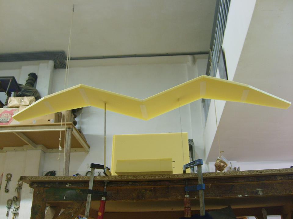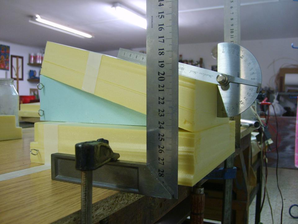 A continuación llega la fase en la que hay que prestar especial atención y cuidado.Los corte de los angulos de los diedros de nuestra ala.Aquí que cada uno se las apañe como mejor sepa (je,je...)yo lo hice así: