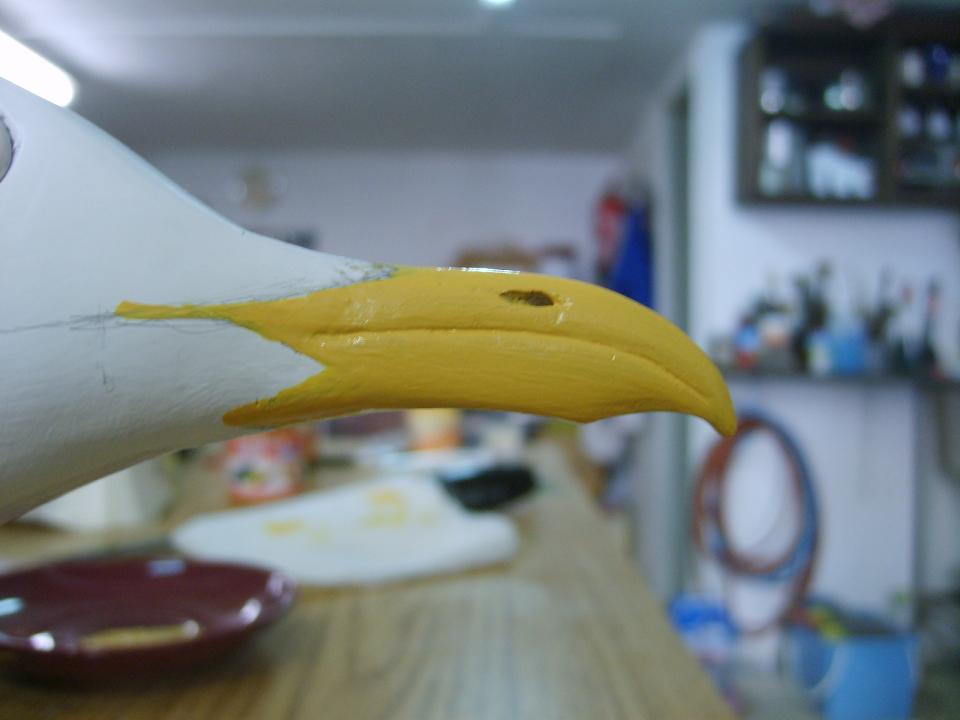 Para el pico un poquito de amarillo y una mancha encarnada.Bueno el pico esta algo currao pero por capricho, no por otra cosa.A veces peco de pijillo, y en esta ocasión he querido currarlo un poco más,lo mismo que los ojos de los que,por desgracia no puedo mostrar en detalle.