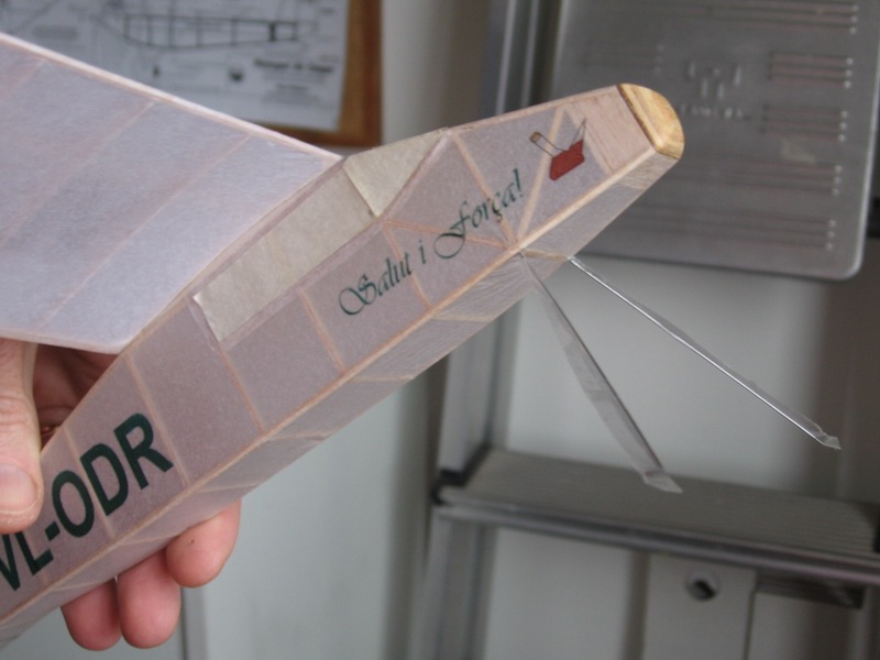 -Hacer sucesivas lanzadas (hacia el suelo, en suave caída o picada, como queráis) para ajustar el planeo elevando o bajando el estabilizador por medio de cuñas.
