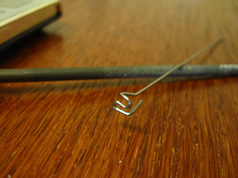 o bien un gancho de aluminio tipo "winding hook" de los que venden en A2Z y otros sitios especializados, o de factura casera:
