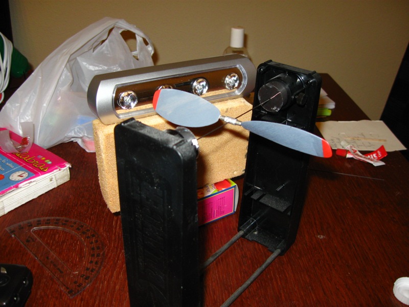 Personalmente pienso que, si bien es fácil equilibrar la hélice en sentido longitudinal (que las dos aspas pesen igual, y que ninguna tenga tendencia a quedarse abajo en reposo), lo que más me cuesta es que la hélice quede equilibrada en sentido transversal; es decir, que cuando deja de girar queda horizontal pero siempre en la misma posición.