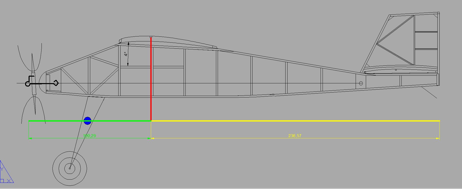 Siguiendo con esta premisa de la posición, no creo que contribuyese muy notablemente a adelantar el CG. Dicho de otro modo: el peso de ese carenado apenas contribuye (por pura palanca) a eliminar un lastre equivalente a 1/2 del peso de ese carenado dado que hasta el morro hay el doble de distancia al CG del modelo que la que hay del cg del carenado al CG del modelo.