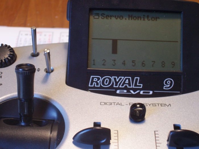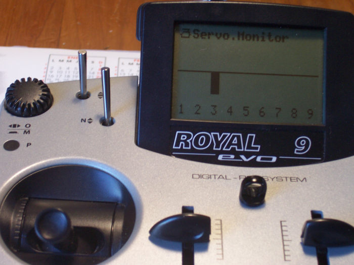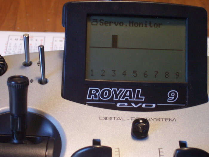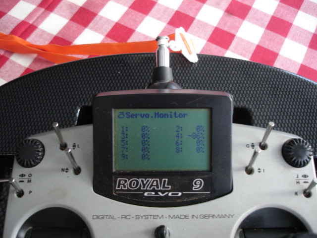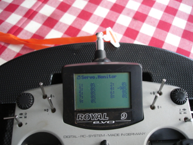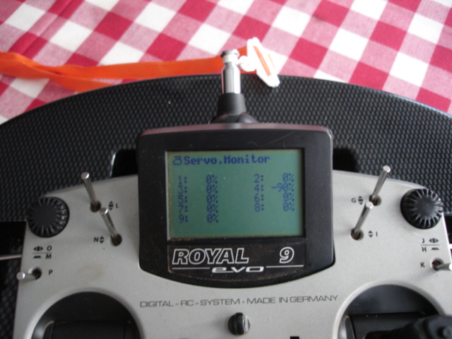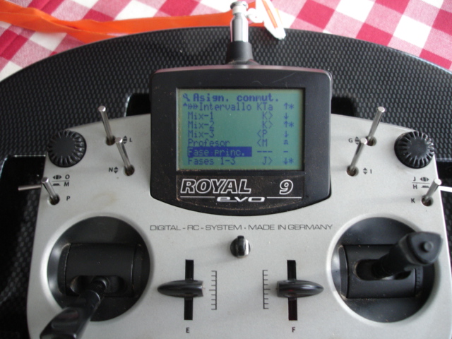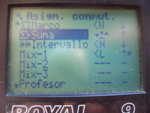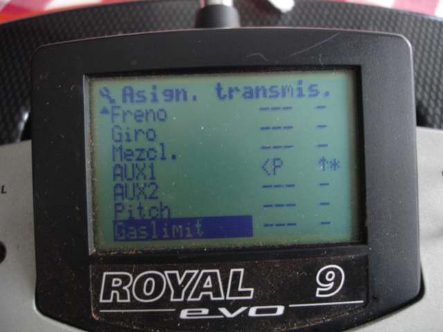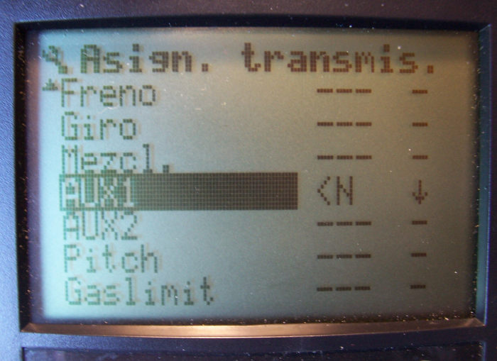 1.- En el menú Setup->Asignaciones->Transmisores Se asigna a AUX1 la palanca N en la posición "abajo".