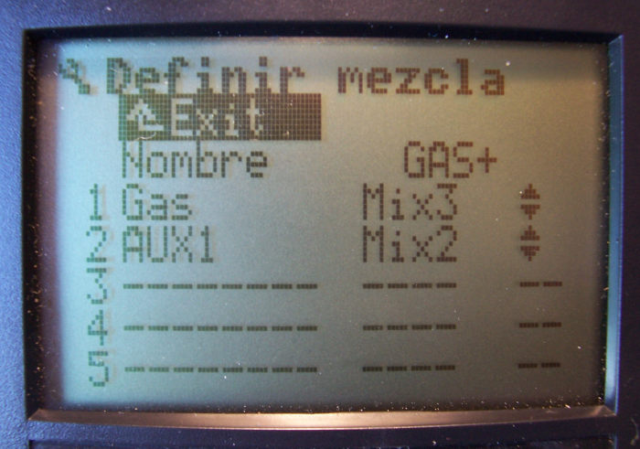 4. - Ahora vamos a crear una mezcla con todo lo que hemos preparado. En el menú Setup->Mezclas creamos una mezcla nueva. En mi caso, la he llamado GAS+. Incluiremos dos entradas: el mando del Gas indicando Mix3 con curva simétrica, y AUX1 que hemos especificado en el punto 1, indicando Mix2 y curva simétrica.