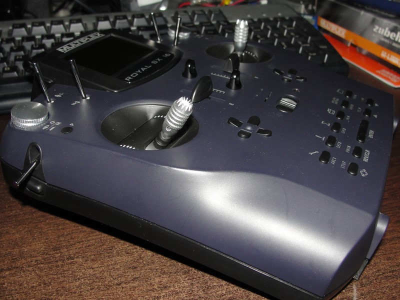 He realizado un par de cambios a la SX, primero, le he instalado el visor de telemetria que tenia en la vieja y he añadido los interruptores K y P, que son mas comodos, por su ubicación, para el doble ralenti y tren de aterrizaje.