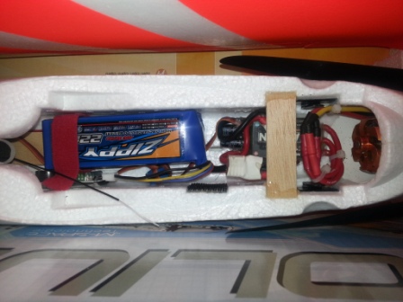Finalmente creo que tendré que poner el CG a 1cm o un poco más, el problema es que la batería ya no puedo correrla más, si es cierto que le faltan 20gr de motor en el morro, así que le pondre 20gr de plomo y valoraré lo que he visto en alguna foto, cortan el corcho de la base y menten el variador por debajo de la batería, de esta forma se puede adelantar más. El problema es que mi variador es de 60A y es muy gordo... no se como lo haré.