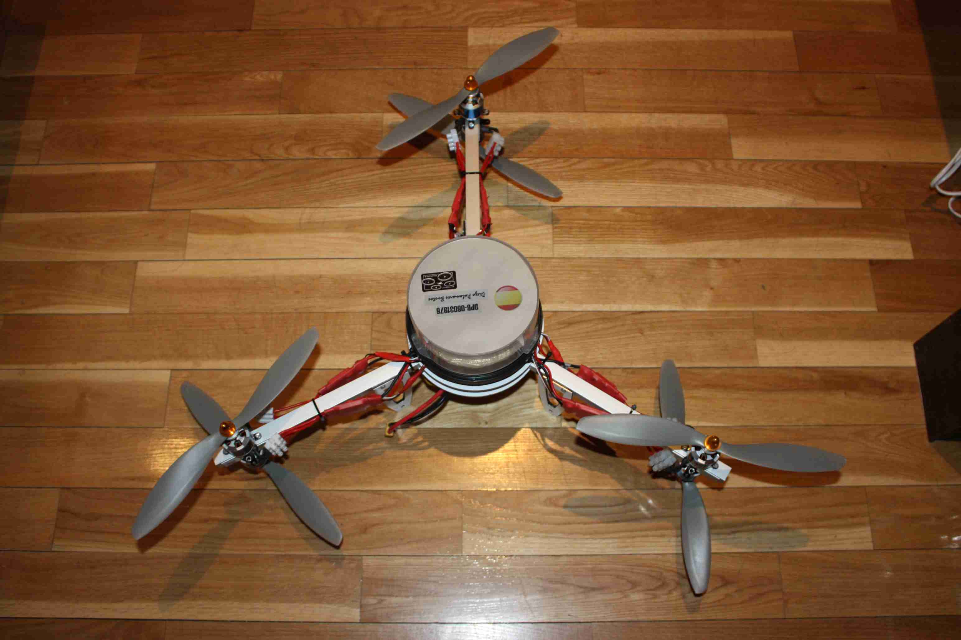 Pero si pones helices normales y contrarotatorias( :? o como se llamen),los motores van a 90 grados sobre los brazos del multicopter,no??
